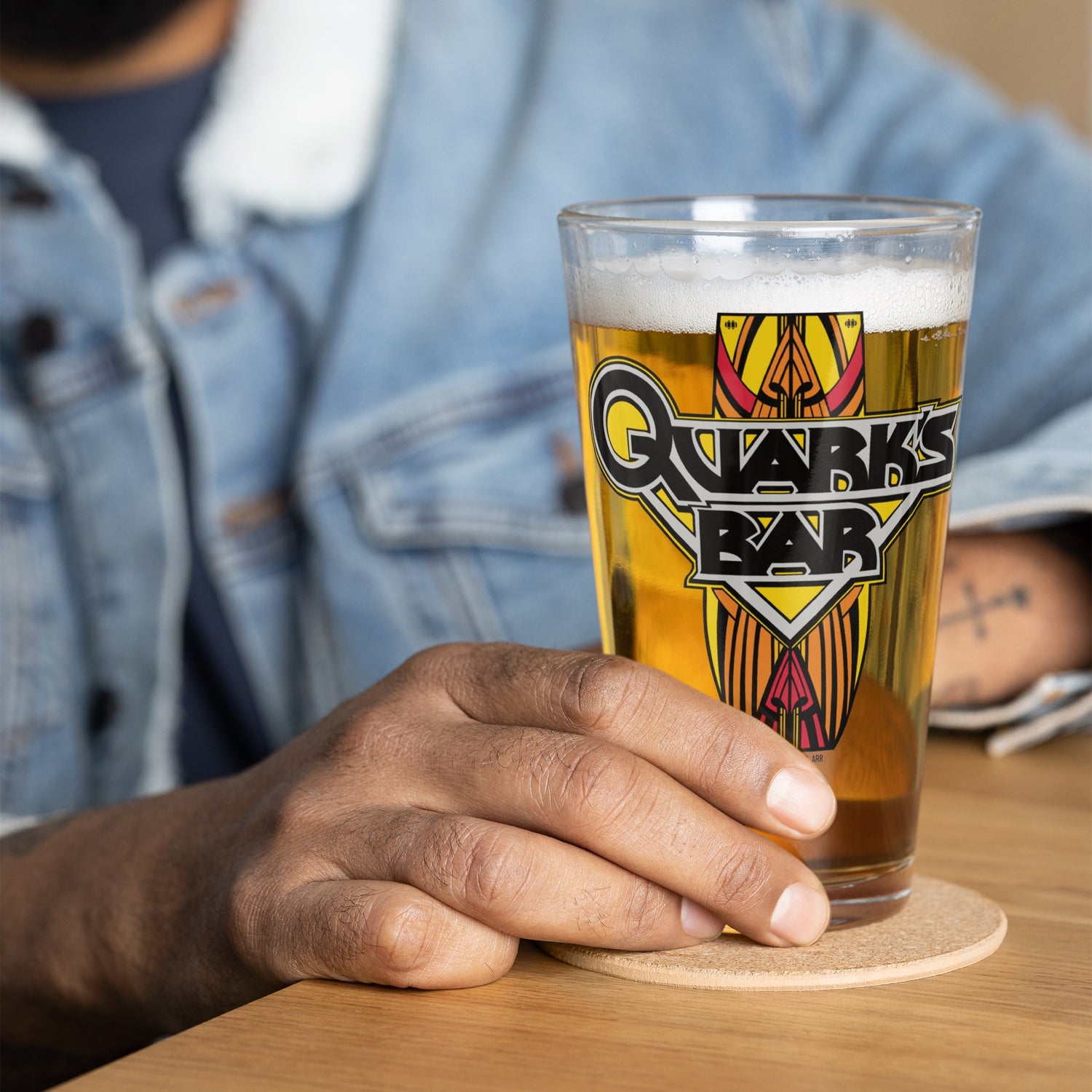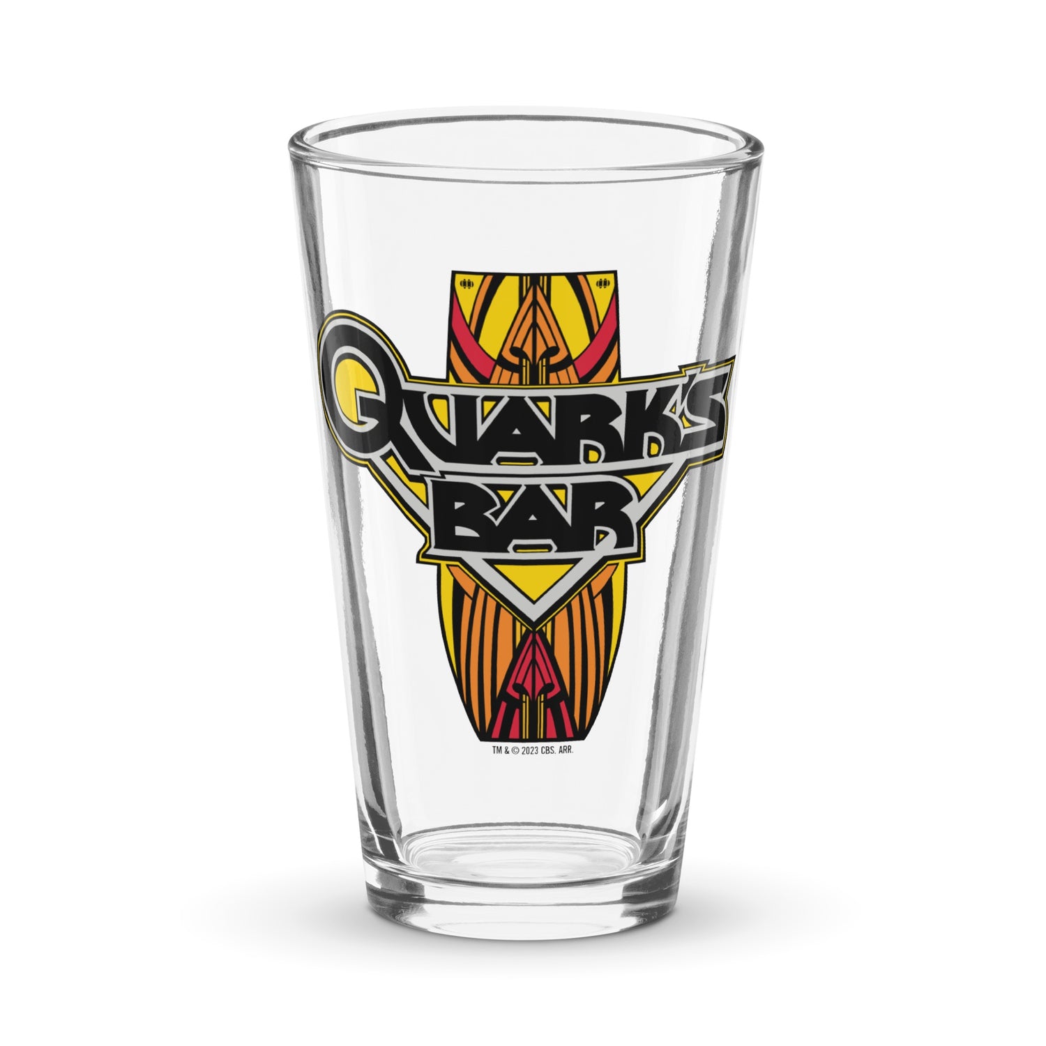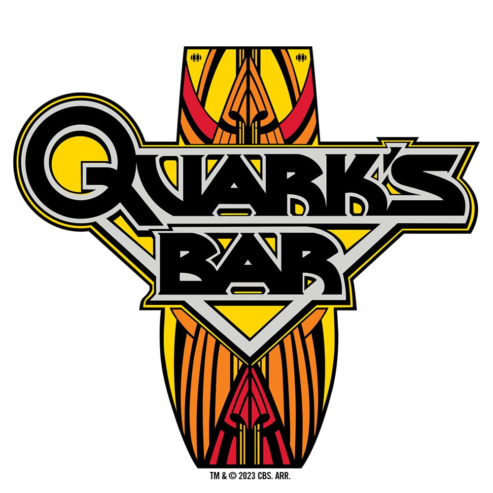 Give a toast to your favorite bar on Deep Space 9 with this Star Trek: Deep Space Nine Quark's Bar Vintage Logo Pint Glass. Featuring the vintage Quark’s Bar logo, this pint glass will look great in your hand and in your cupboard.