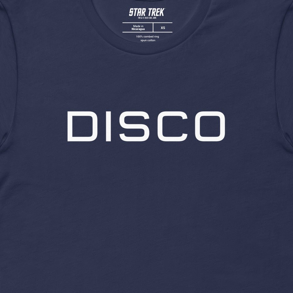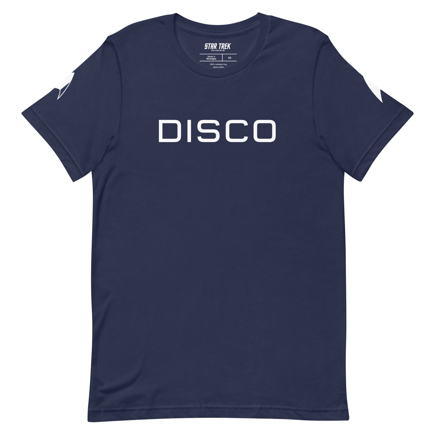 Step into the adventure with the official Star Trek: Discovery Disco T-Shirt! As seen on the illustrious Michael Burnham and the ever-enthusiastic Sylvia Tilly, this shirt is more than just apparel – it's a symbol of our unwavering commitment to discovery and progress. The Discovery delta graces both sleeves, a proud emblem of our mission. On the front, the word "DISCO" boldly represents the U.S.S. Discovery.