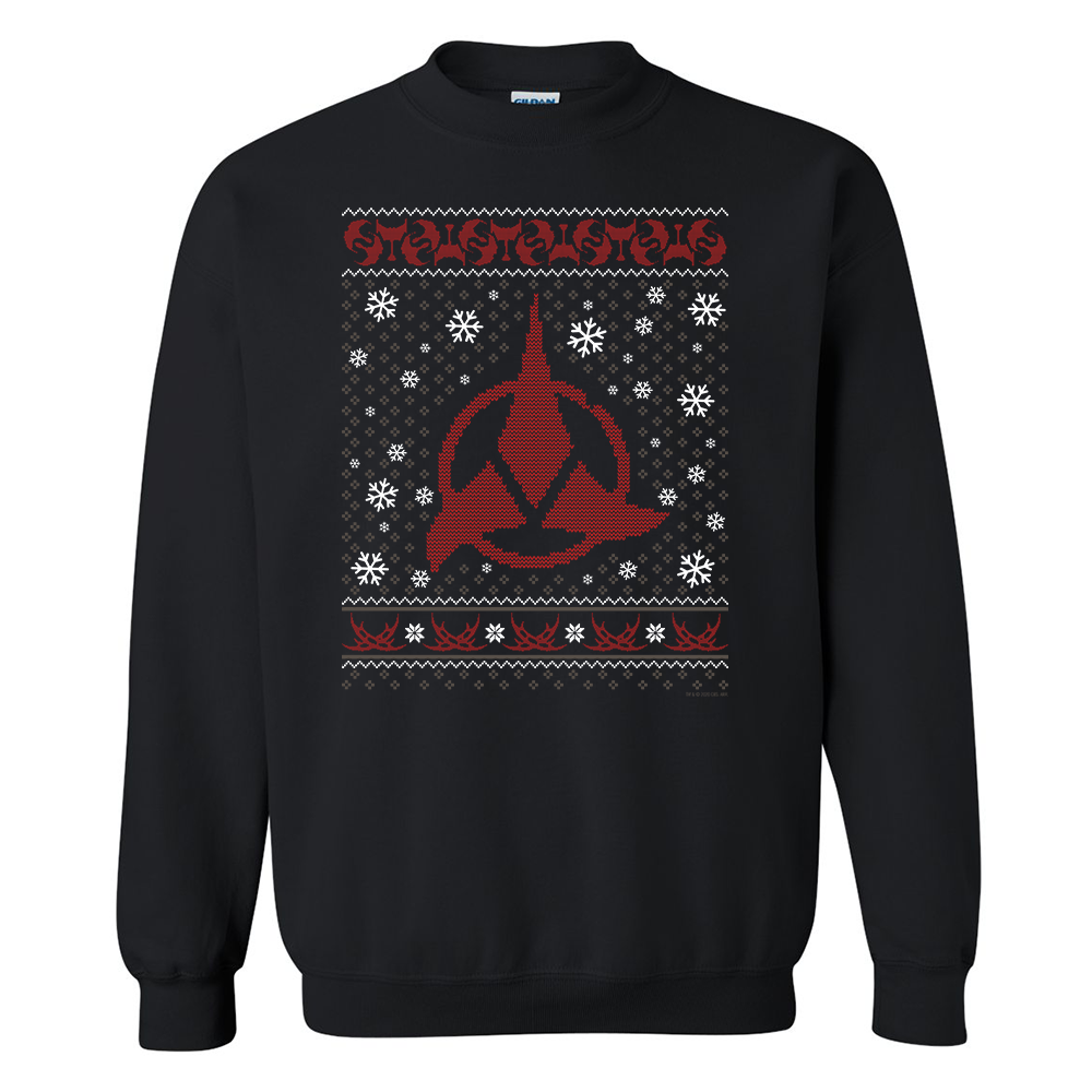 As the old proverb goes, Klingons do not procrastinate, especially when it comes to finding the perfect holiday sweater. Featuring the Klingon symbol within a festive design, this cozy Star Trek Klingon Holiday Fleece Crewneck Sweater will get any Star Trek fan into the holiday spirit. From baking cookies to watching your favorite Star Trek episodes, this sweater is a holiday style staple.