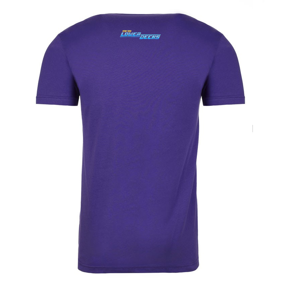 Any fan of the series will appreciate this classic Star Trek: Lower Decks Chu Chu Adult Short Sleeve T-Shirt! Featuring a multi-color design against a purple fabric, this comfy tee will stand out each time you wear it.