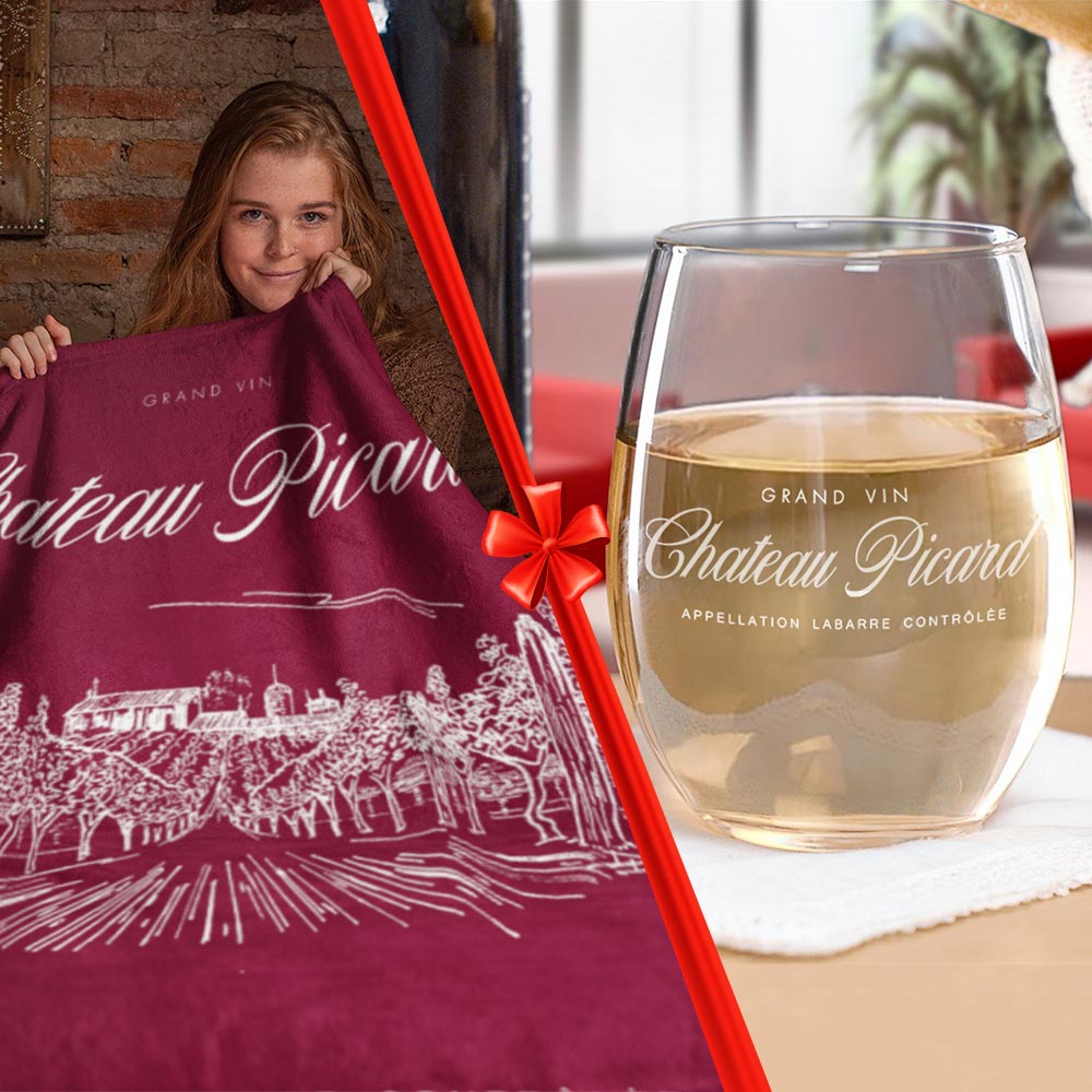 Are you looking for the perfect gift to give Captain Picard fans? Make it so by gifting them the Chateau Picard Gift Wrapped Bundle! Equipped with the ultra-cozy Chateau Picard Vineyard Logo Sherpa and the chic Chateau Picard Stemless Wine Glass, this bundle will make Picard fans feel merry and bright all holiday season long.
