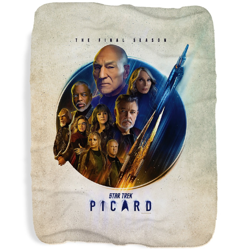 Curl up and enjoy your favorite episode as you watch Picard and the rest of the command crew deal with Vadic under the Star Trek: Picard Season 3 Cast Sherpa Blanket! This sherpa blanket will not only bring life to any room but will show off your endless love for Star Trek: Picard!