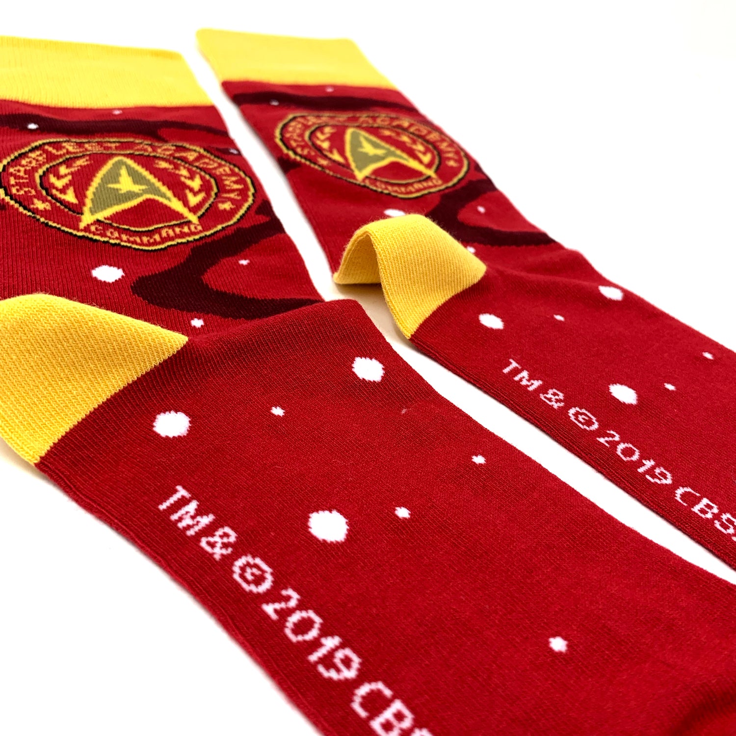 Bright and colorful, these Star Trek Starfleet Academy Command Socks are the perfect way to show off your Starfleet Academy Command status! Stylish enough to go with any outfit, these socks are comfortable enough to wear throughout the galaxy.