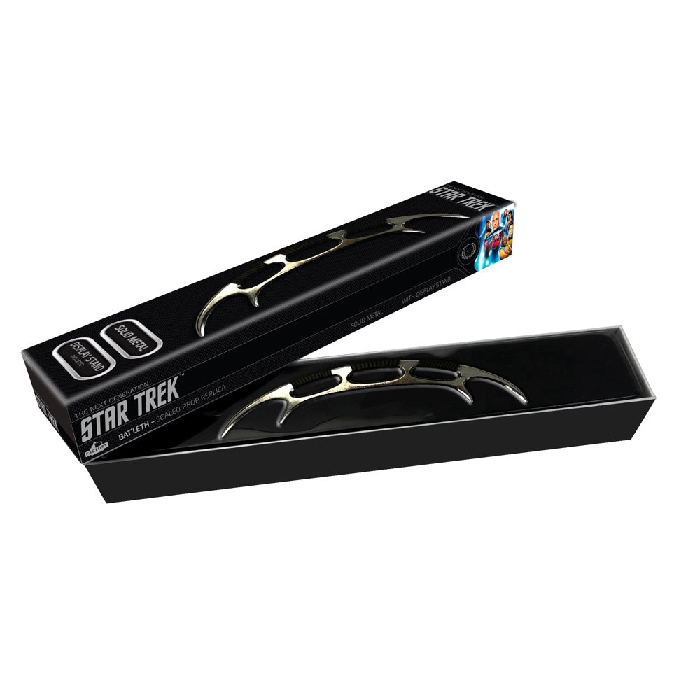 Engage with the pinnacle of Klingon craftsmanship with the Star Trek: The Next Generation Klingon Bat'leth Scaled Prop Replica. This officially licensed, high-quality 7-inch replica is molded from solid metal, ensuring durability and authenticity. It comes in collector packaging and includes a display stand.
