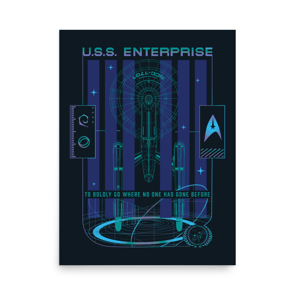 Explore the final frontier with the Star Trek: The Original Series Enterprise Premium Poster. This poster features a stunning and colorful illustration of the iconic U.S.S. Enterprise NCC-1701 in its classic starship glory. The perfect gift for any Star Trek fan or sci-fi enthusiast, it captures the spirit of exploration and adventure that defines this iconic series.