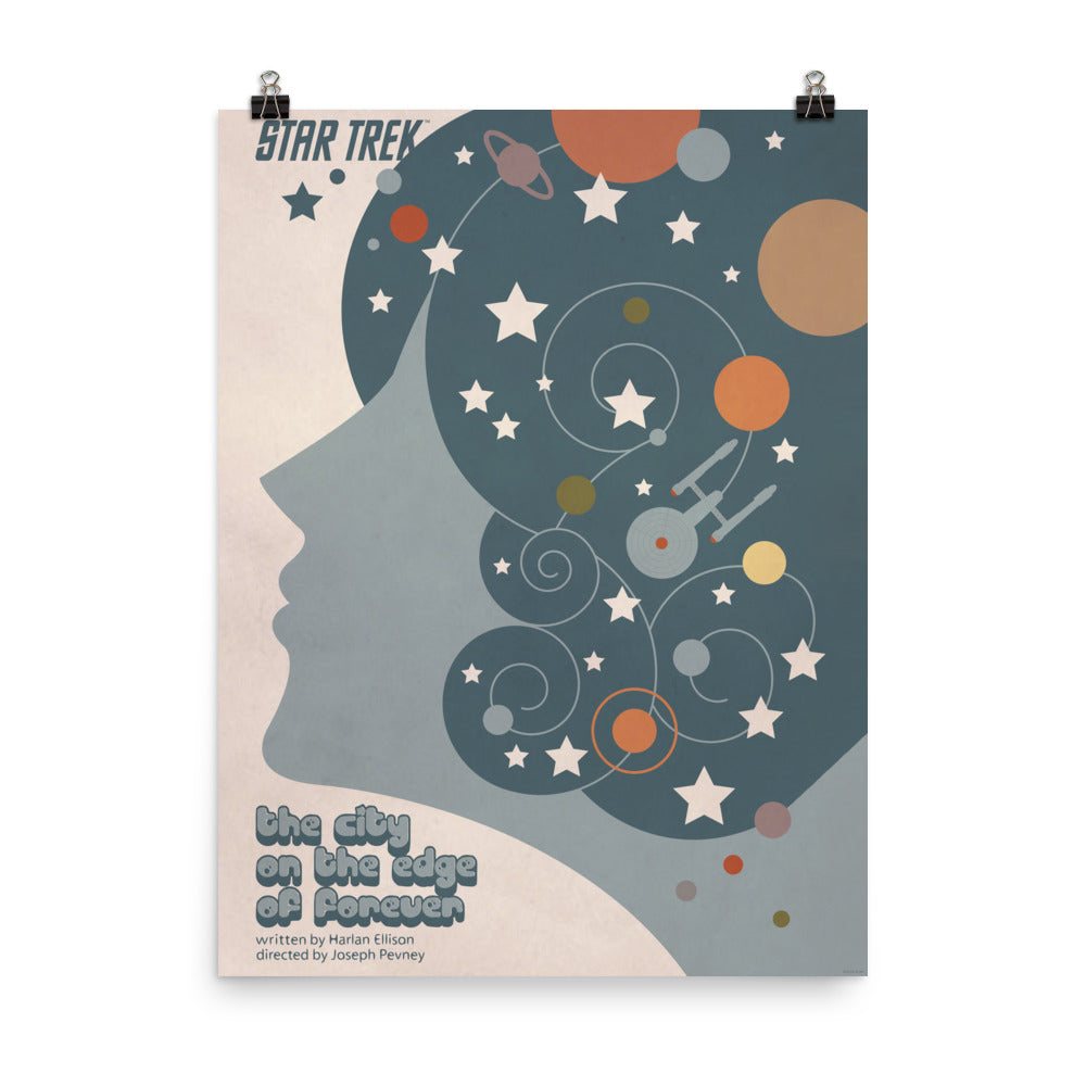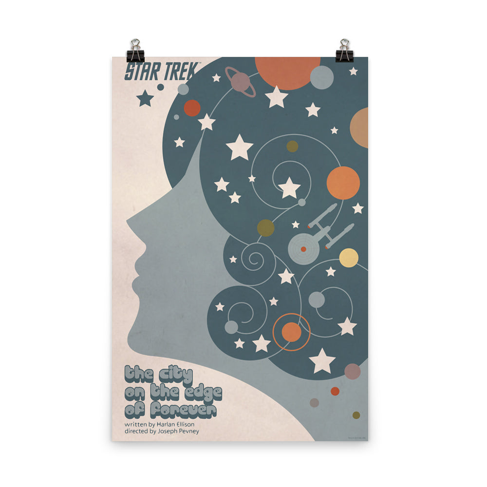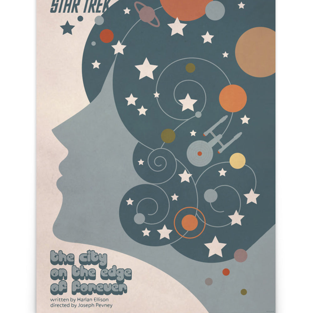 Welcome to the City on the Edge of Forever. Perfect for any fan of the series, this chic Star Trek: The Original Series Juan Ortiz The City on the Edge of Forever Poster commemorates the penultimate episode of the first season in a beautiful, galaxy-inspired design.