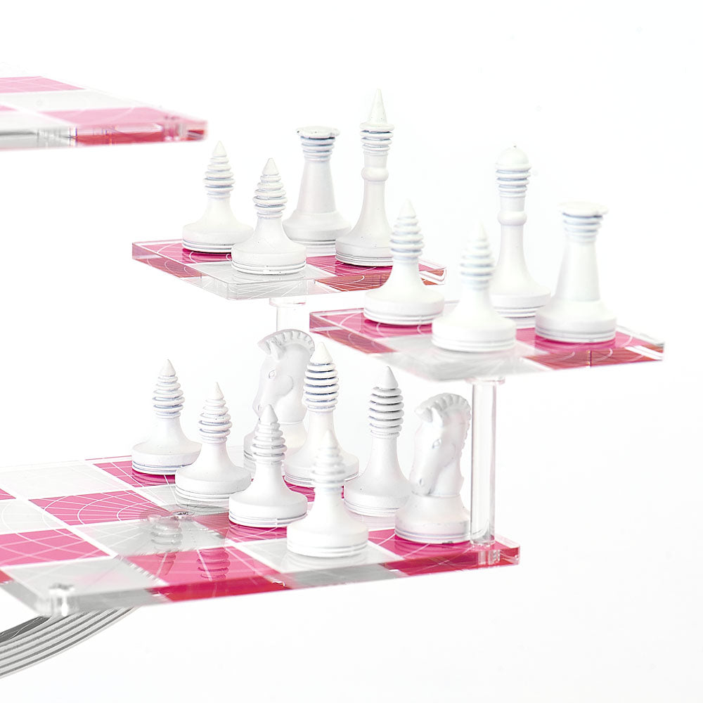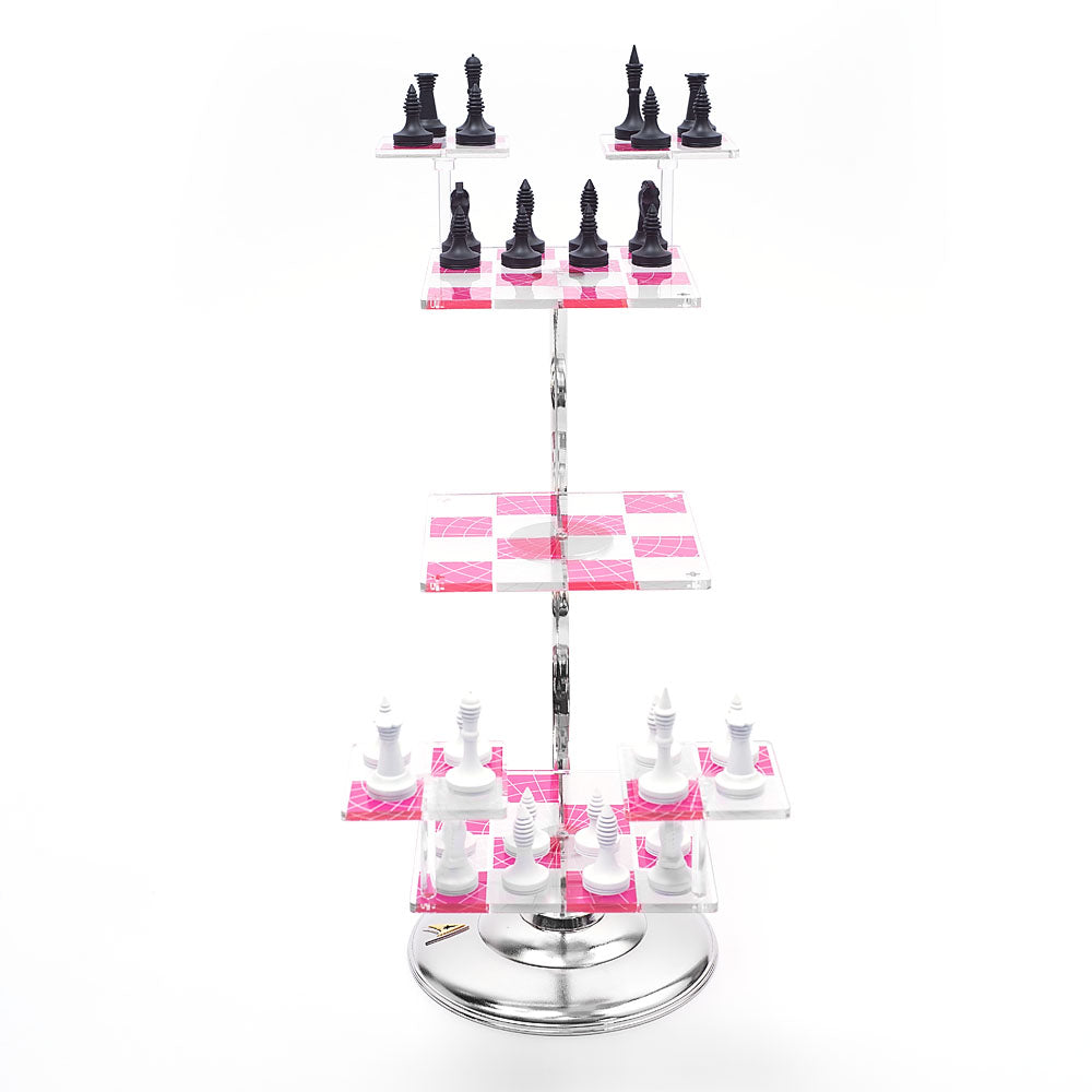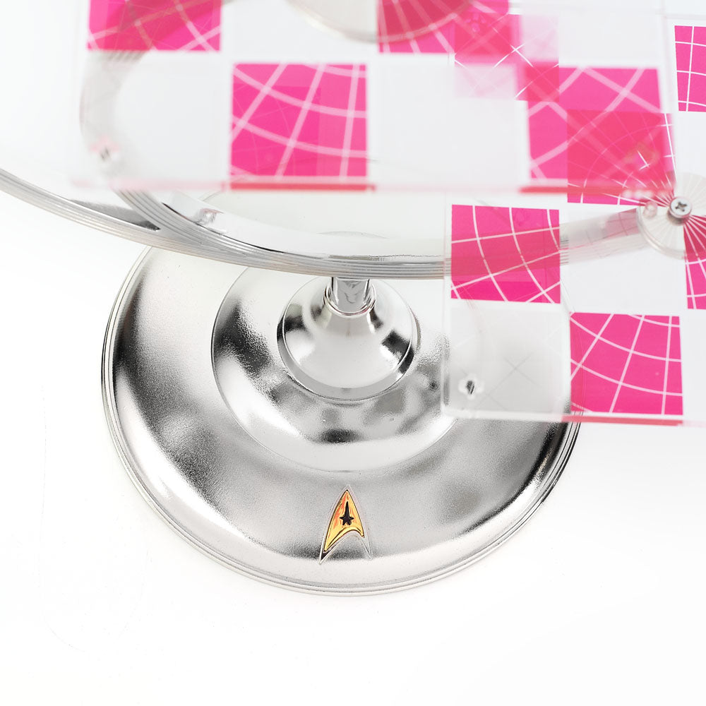 Enter an intergalactic chess expedition with the official Star Trek Tridimensional Chess Set. The authentic prop replica of the iconic Tridimensional Chess Set, as seen on Star Trek: The Original Series, includes 32 die-cast pieces that measure approximately 1.5 inches tall. The officially authorized recreation of the iconic game measures approximately 13 inches tall and features translucent acrylic game boards.
