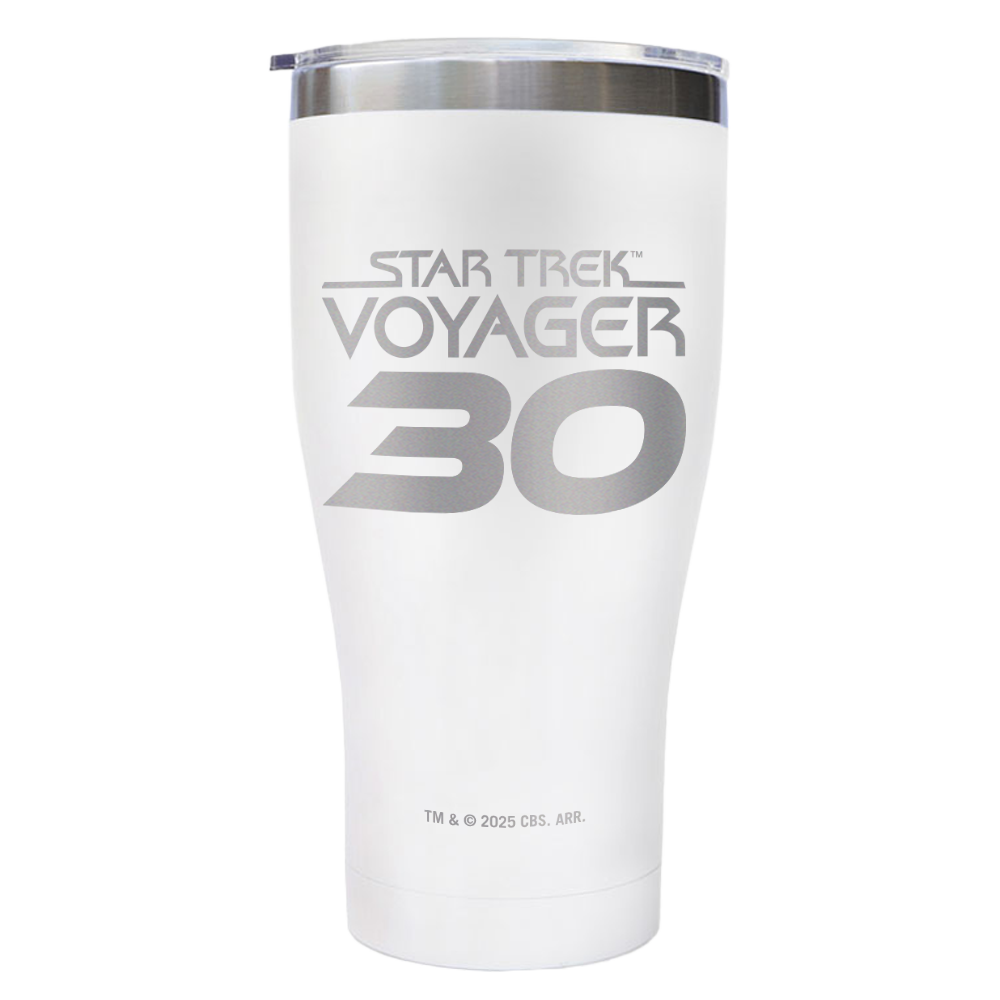 Celebrate three decades of Star Trek: Voyager with this sleek 30th Anniversary Logo Etched Tumbler. Featuring a finely etched logo, this tumbler pays tribute to the iconic series, making it a must-have for fans.